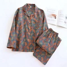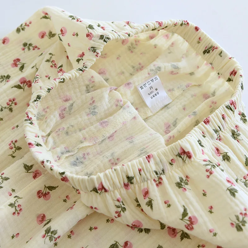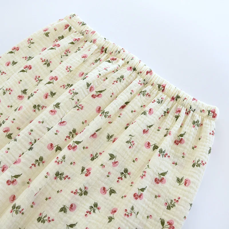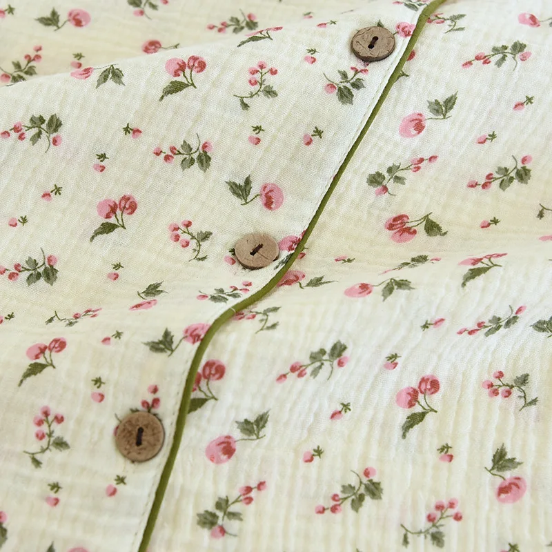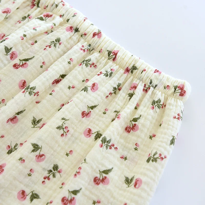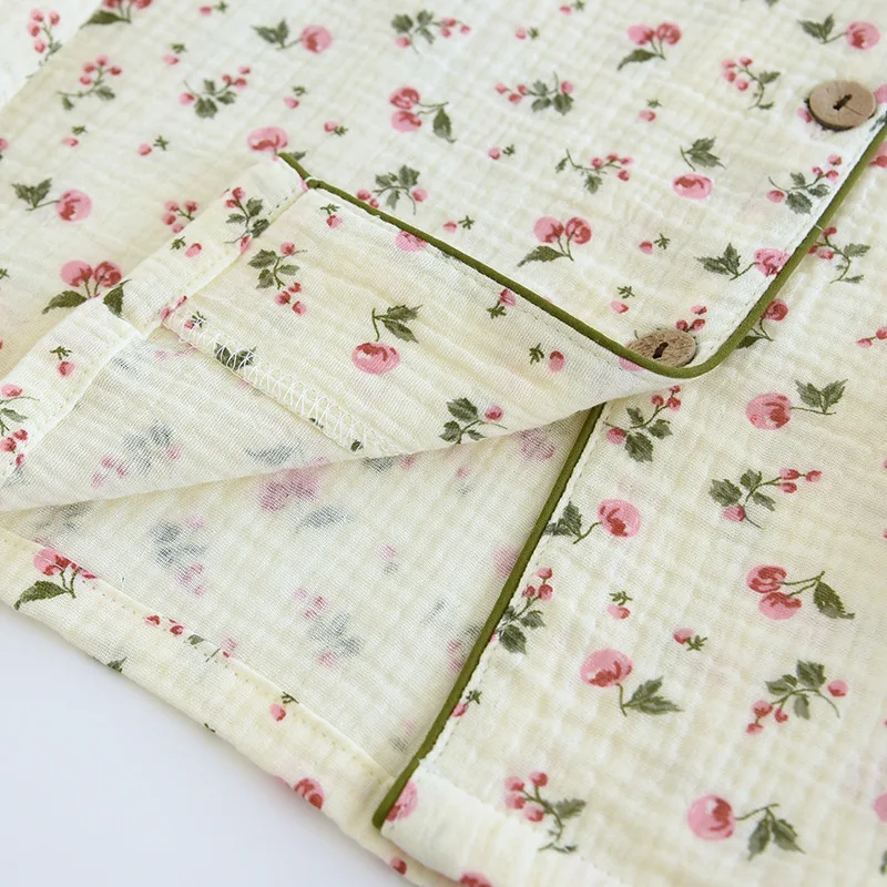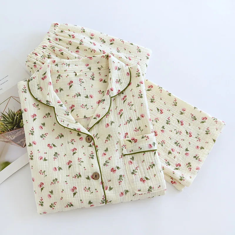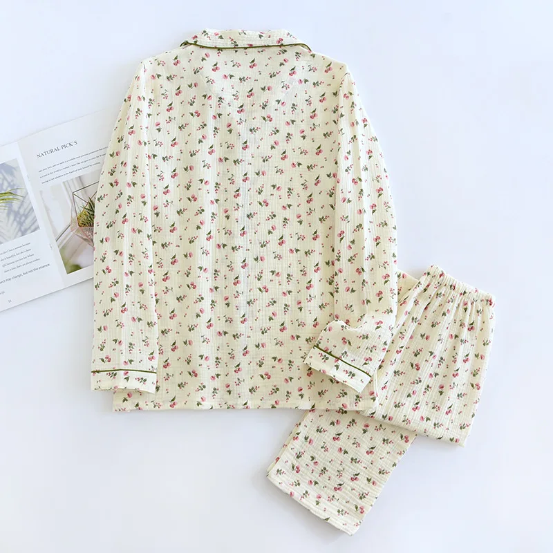 2025 Spring and Autumn Women's Pajama Set 100% Cotton Crepe Long Sleeved Pants Two piece Cute and Sweet Home Fury Set Ladies