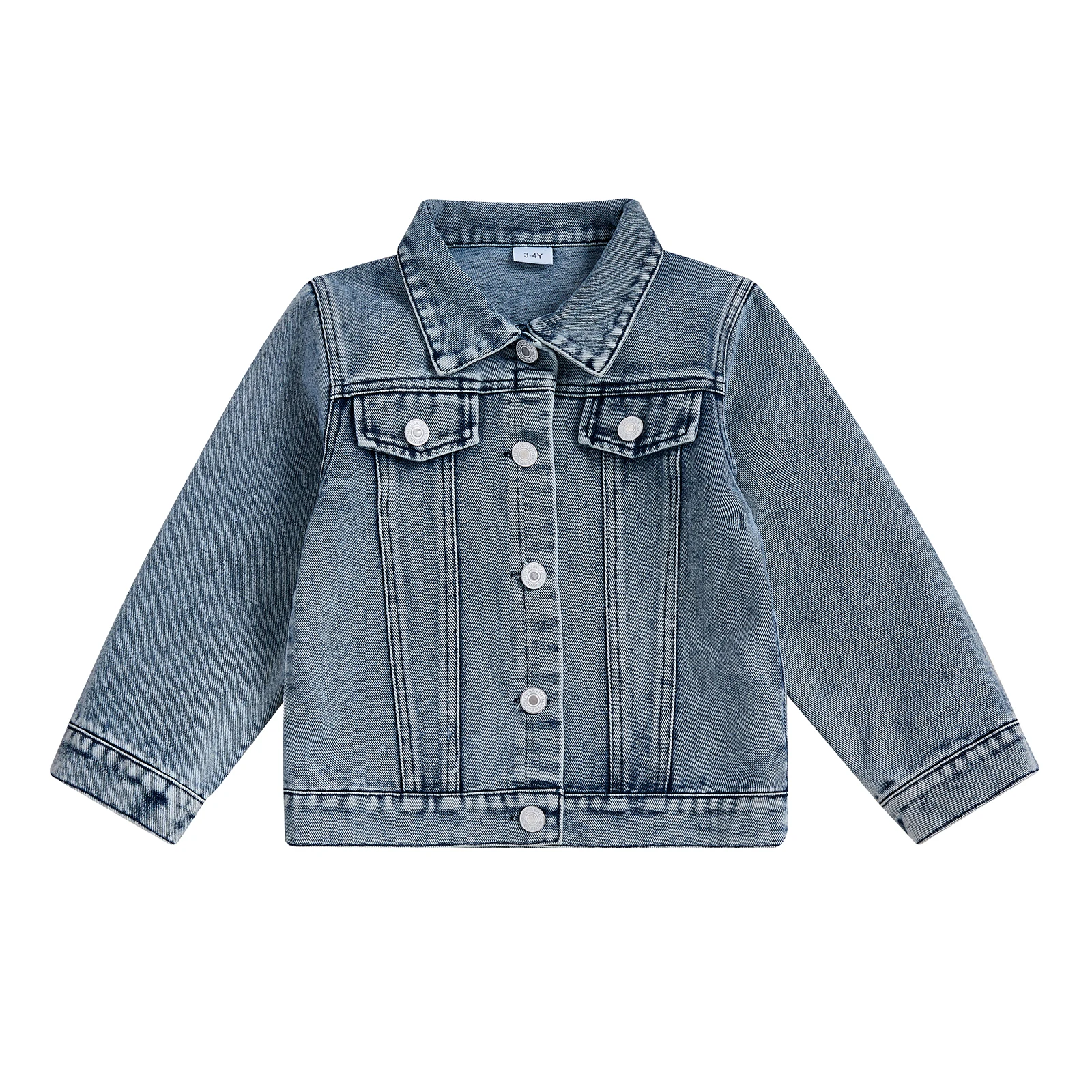 Adorable Baby Blue Denim Jacket with Front Pocket Detail and Snap Button Closure/ Stylish Toddler Fall Outfit Coat