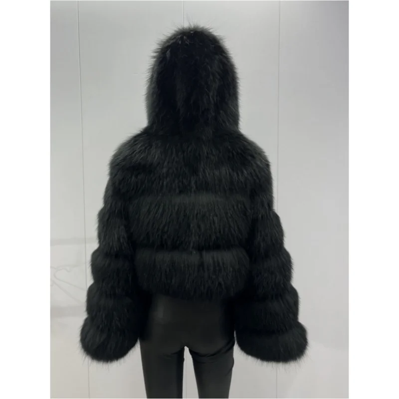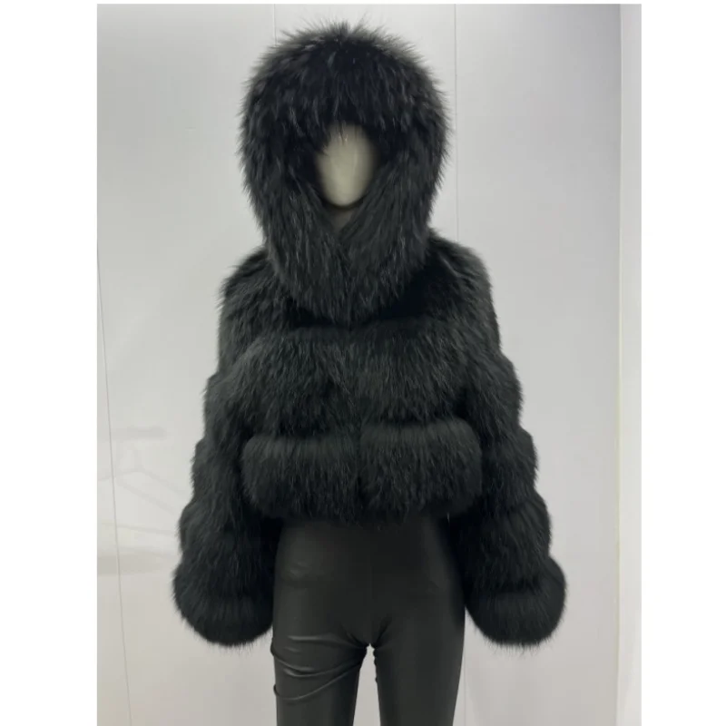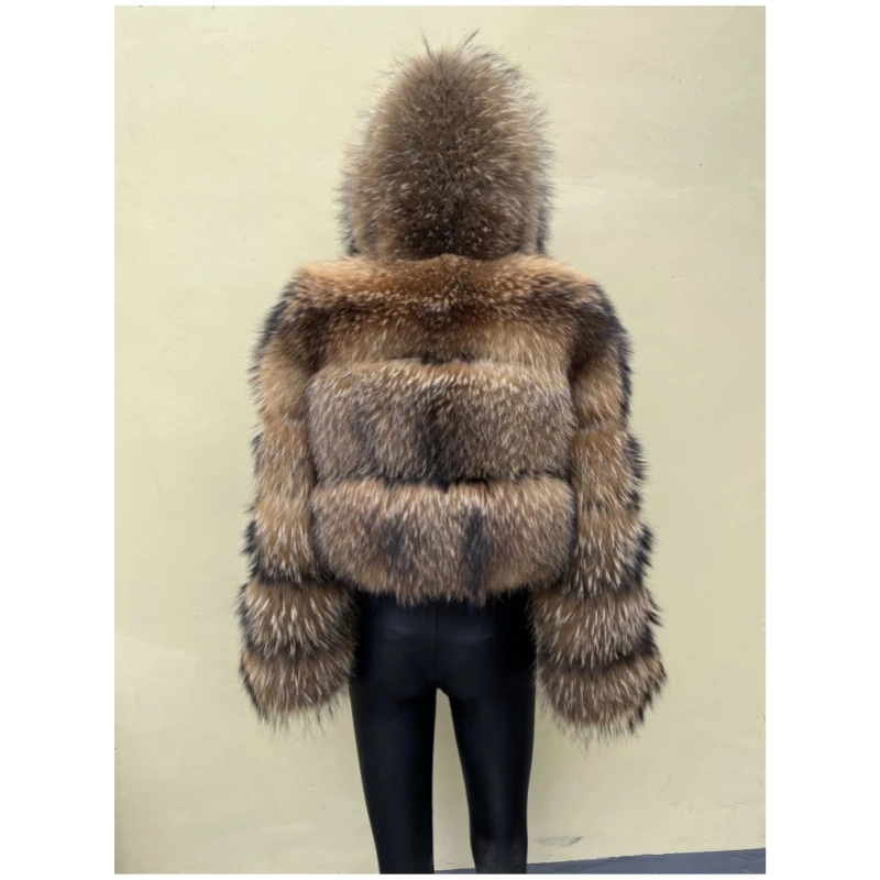 BEIZIRU Women's Short Real Raccoon Fur Coat/ Winter/ Long Sleeve Hooded/ Natural Luxury Thick Jacket for Fashionable Cold Weather