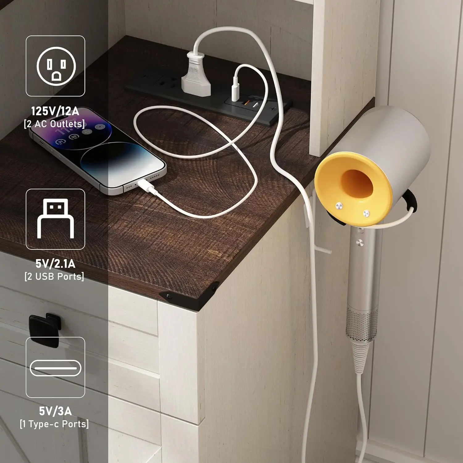 • 【FUNCTIONAL DESIGN】Vanity set includes an upholstered stool for added comfort and a built-in charging station featuring 2 AC outlets, 2 USB ports, and 1 type-C port for easy device charging, a hair dryer rack to help you easily access your hair dryer, curling iron, etc.