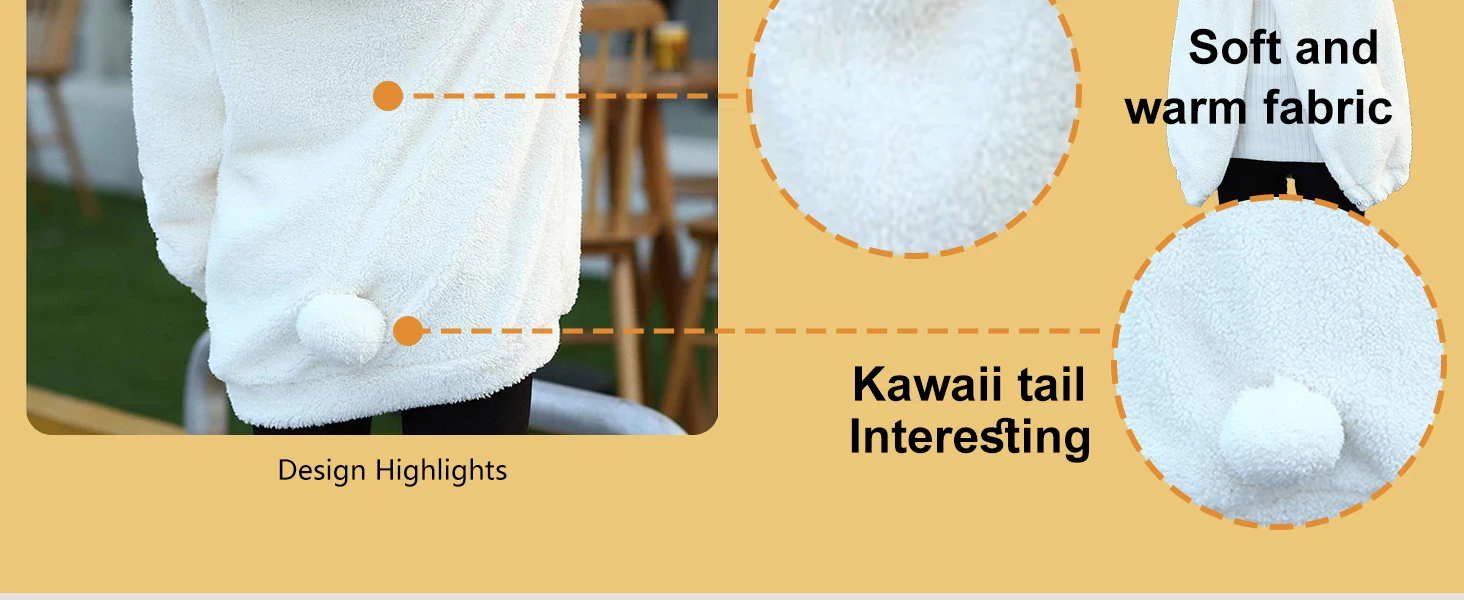 Fluffy Kawaii Bunny/Bear Hoodie Ears&Tail Animal Top/ Cute Rabbit Zip Jacket Winter Women/ Girl Sweet Sweater Coat