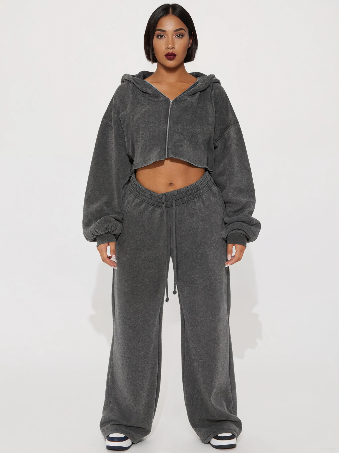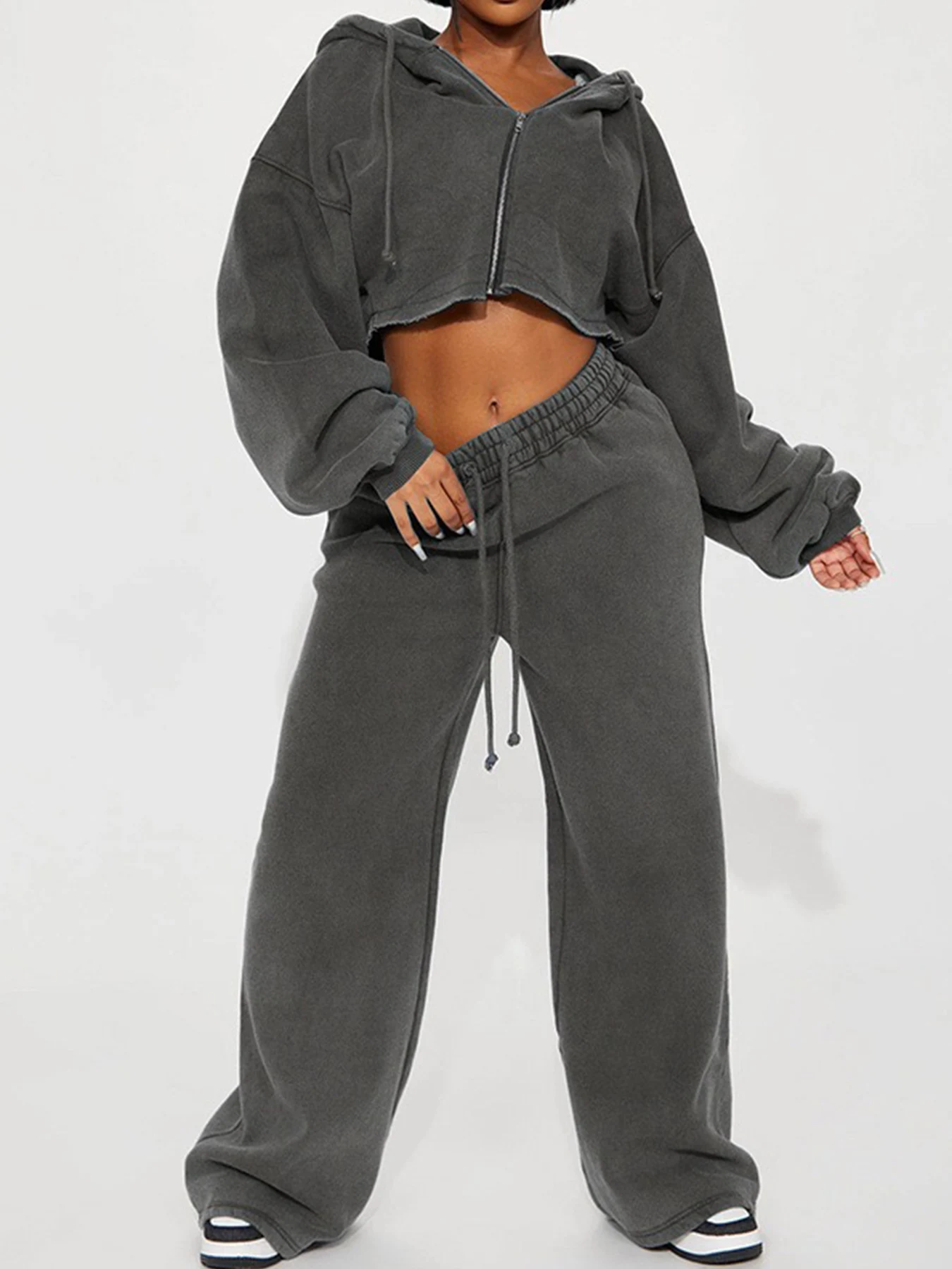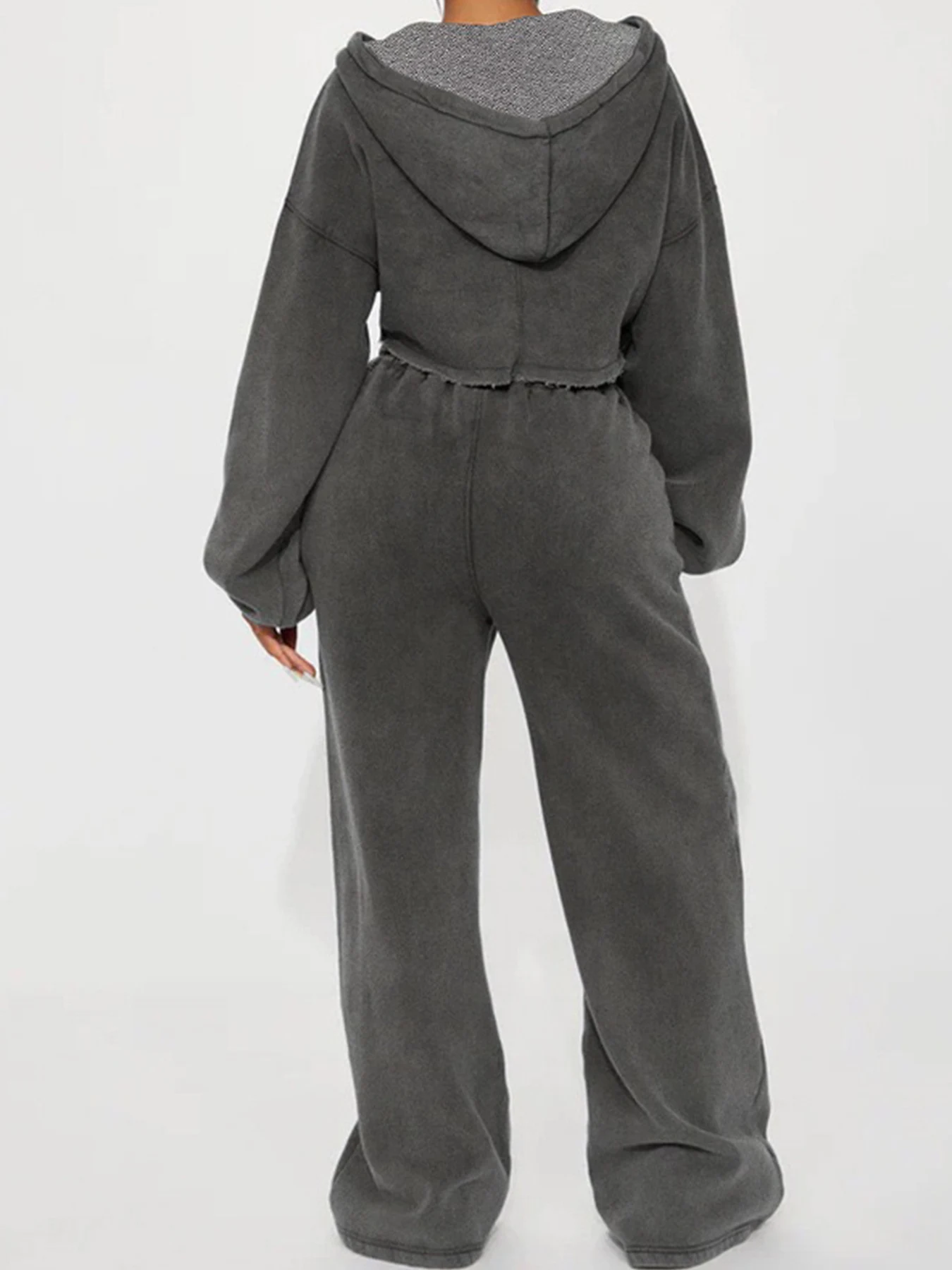 New Women's Solid Color Long Sleeve Hooded Zipper Sweatshirt and Casual Joggers Set