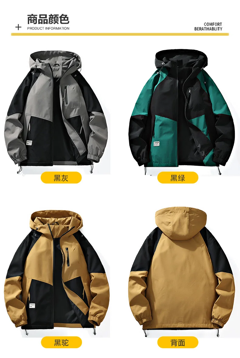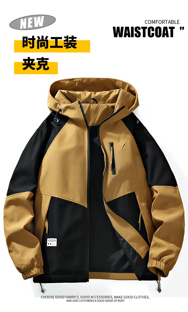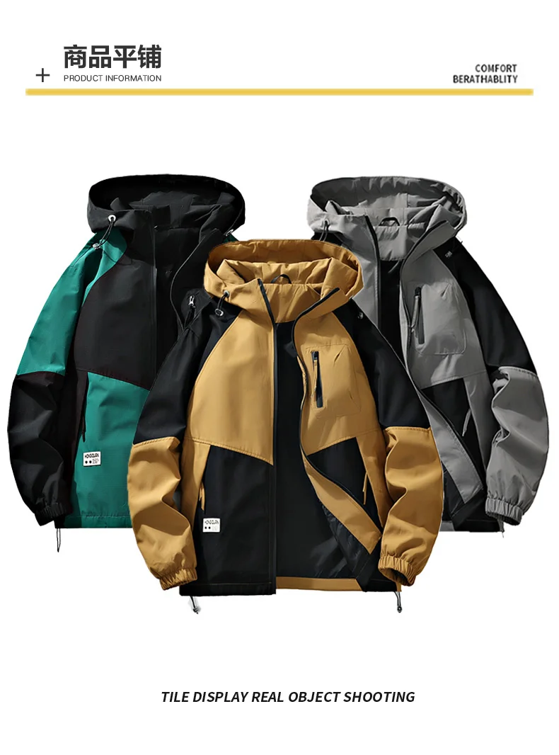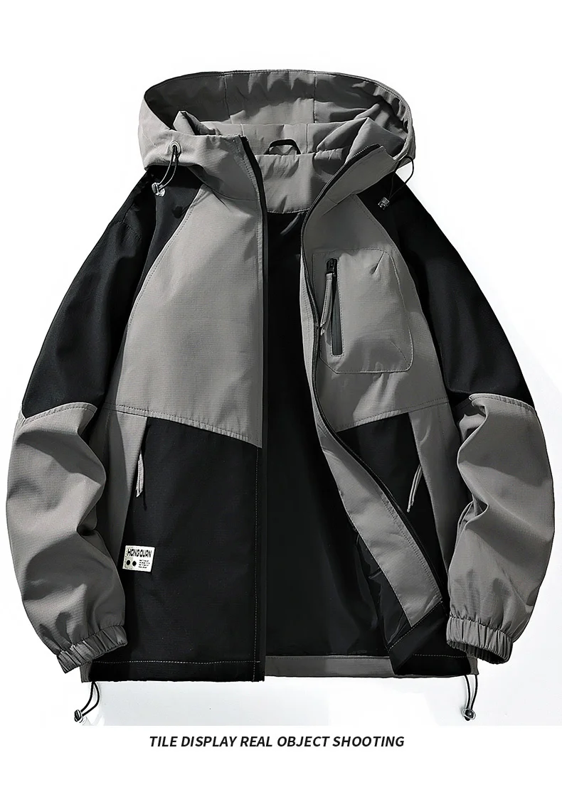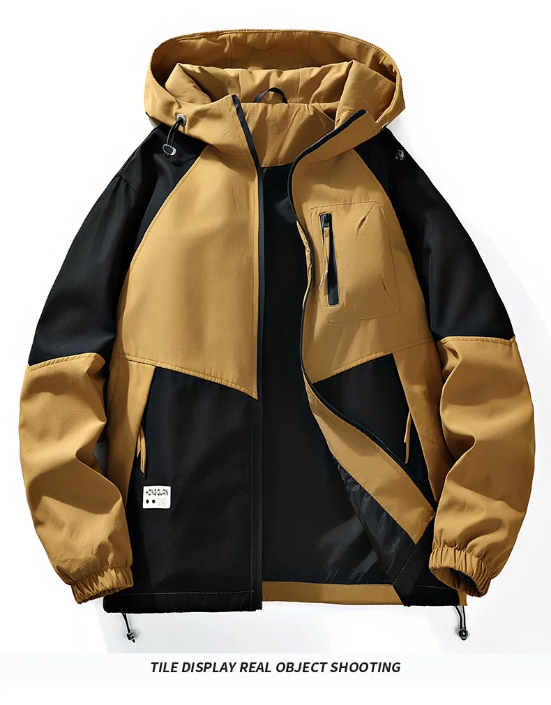 Outdoor Loose Hooded Hiking Jackets for Men Quality Waterproof Trekking Coats Fashion Comfortable Male Clothes Autumn All-Match