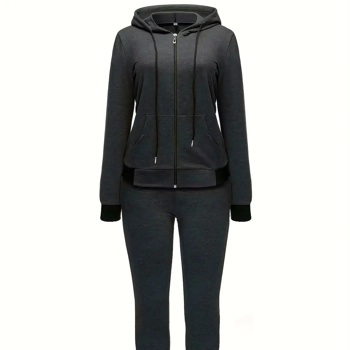 Plus Size Women's Fashionable Casual Hooded Top Set