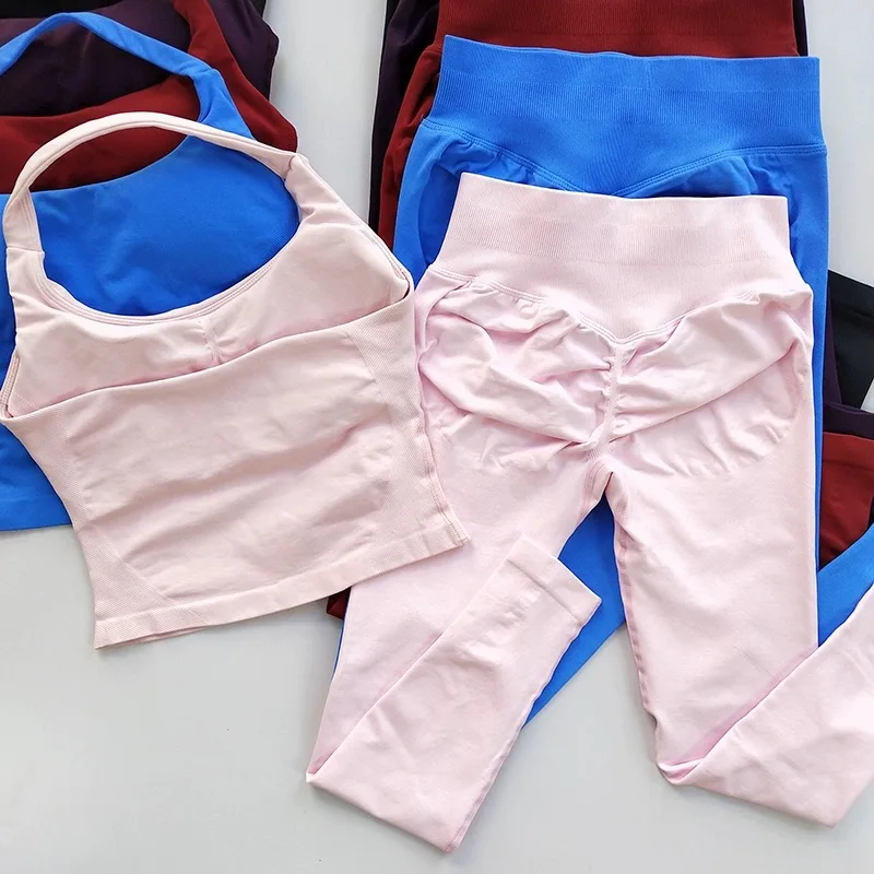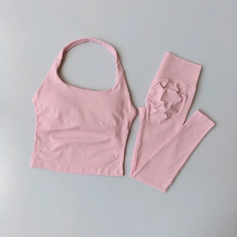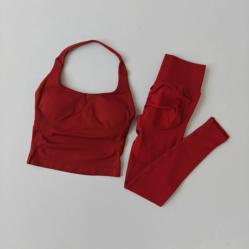 Yoga Pants High-Waisted Tummy-Control Hip-Lifting Sports Suit/ Women's Push-Up Shockproof Halter Neck Back-Slimming Fitness Set